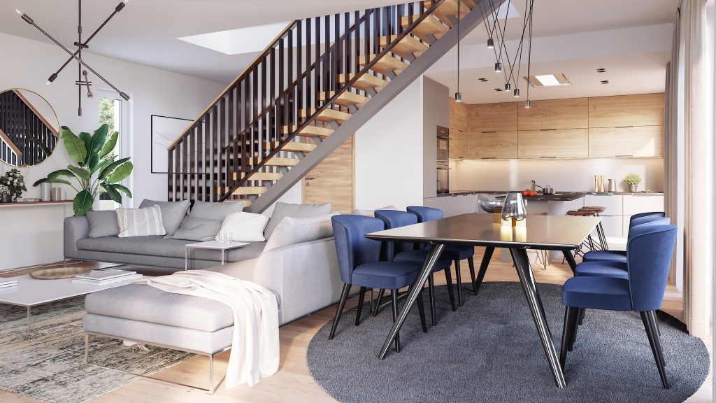 Hoone sisekujundus ja viimistlusmaterjalide valik on detailideni läbi mõeldud. Väga avar elutuba-köök mis avaneb lükandustega terrassile – Sinu aed on sinu elutuba.Tavalisest ridamaja U-kujulisest trepist eristuv muljetavaldav klaaspiirdega ja massiivsete puidust tammeastmetega sirge talatrepp. Ruumid on kõrged, suurte akendega ja valgusküllased, paljude klaaslahendustega. Igal majaosal on piisavalt suur köetav majapidamisruum, kuhu mahuvad vabalt nii jalgrattad ja lapsekärud. Siseviimistluse valikutes on ühelipiline kvaliteetne tamme laudparkett ning naturaalsete toonidega maitsekas sanitaarruumide plaadivalik. Wc-potid ja vann kvaliteettehnika Villeroy&Boch`lt.